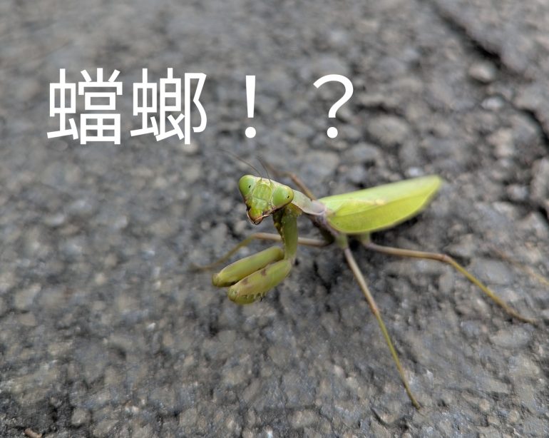 「蟷螂(とうろう)」はカマキリと読みます。「蟷」は、「対峙する」「向かっていく」などの意味もある「當」の字に虫へんをつけた字で、「螂」は、若い男性などを表す「郎」に虫へんをつけた字です。2つの字を合わせて、カマキリの姿が連想されます。