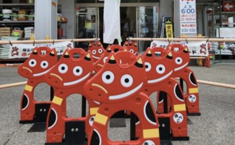 これは、福島県会津若松市で土木・建設資材の販売やレンタル業を手掛ける有限会社ワシオ商会の「赤べこバリケード®」。