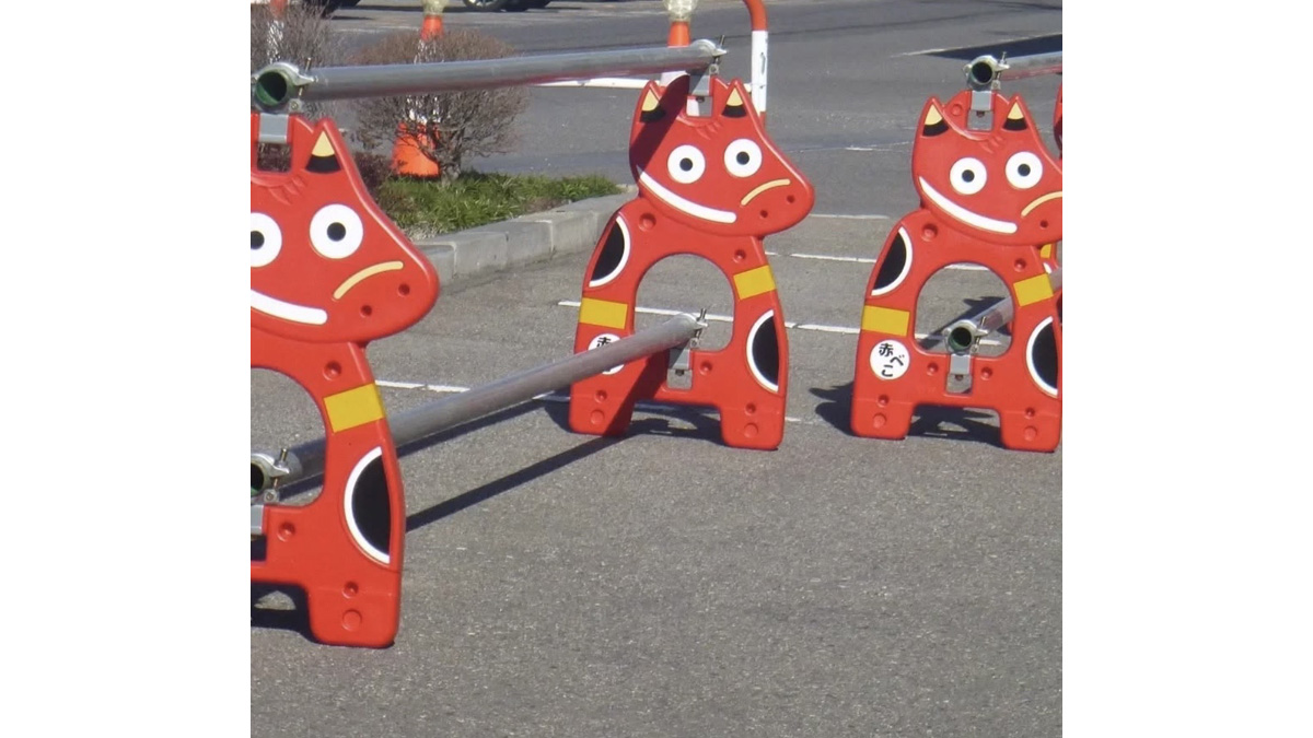 それは、よく目にする黄色と黒の警告カラーでもなく無機質な鉄柵でもない。深みのある紅色に染まったキュートすぎるキャラクターが路上で映えまくっている。