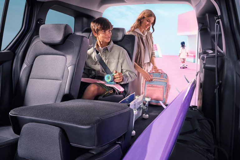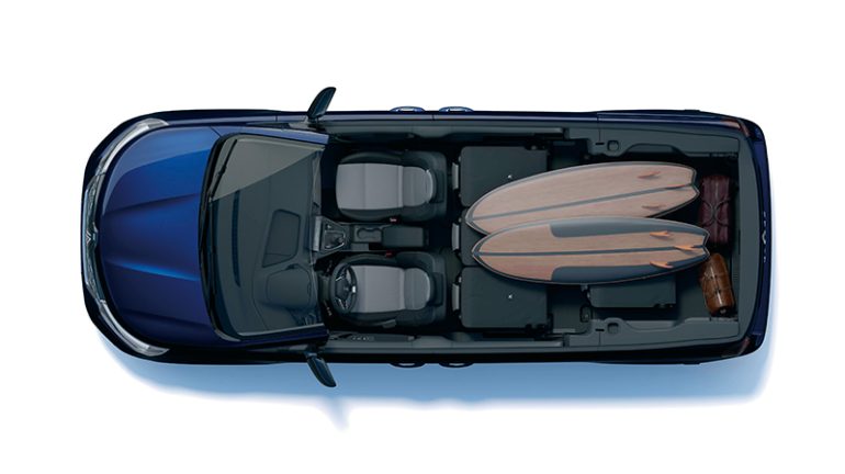 ホイールベースが延ばされたことにより、スライドドア部が新たに設計され、開口幅がルノー カングーに比べて180mm広い830mmとなった。開口幅が広がったことにより、2列目はもちろん、3列目シートへ乗り込む際に2列目のシートを跳ね上げても十分なスペースがあり、乗り降りが容易に行なえる。また、ホイールベースの延長は、走行安定性や乗り心地の向上にも寄与する。