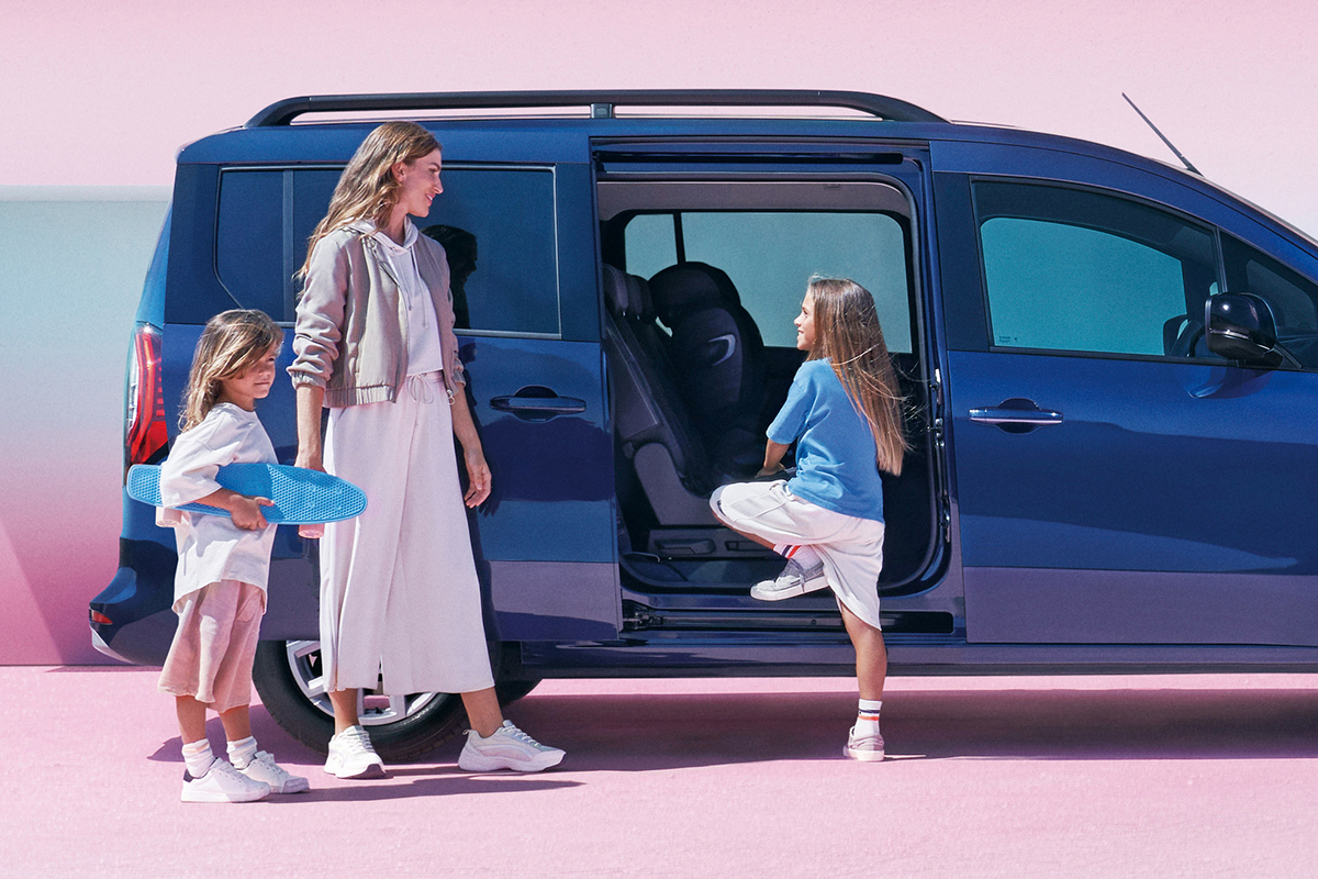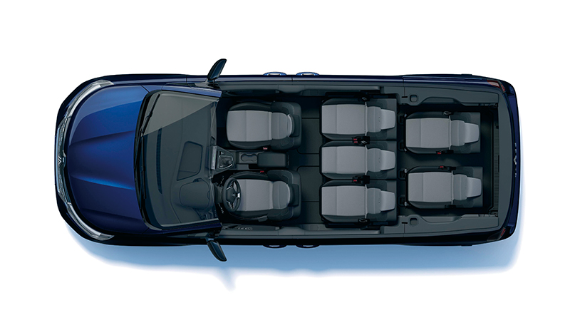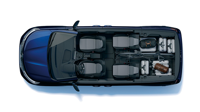 ホイールベースが延ばされたことにより、スライドドア部が新たに設計され、開口幅がルノー カングーに比べて180mm広い830mmとなった。開口幅が広がったことにより、2列目はもちろん、3列目シートへ乗り込む際に2列目のシートを跳ね上げても十分なスペースがあり、乗り降りが容易に行なえる。また、ホイールベースの延長は、走行安定性や乗り心地の向上にも寄与する。