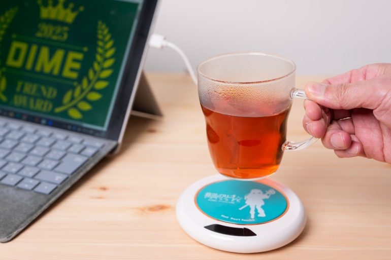 原作もアニメも大人気な同作品のコラボデザインを施した保温パネルが発熱。上に置いた容器内の温度をキープする。カップに入れたお茶やコーヒーを最後の一滴まで温かく飲めるのは〝魔法〟のような体験!