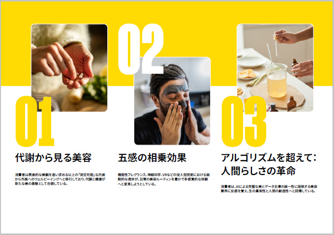 美容はグローバル規模で、健康、テクノロジー、パーソナライゼーションが融合する新しい段階に入っている。特に細胞レベルの体の内側からの健康に根ざす美容ケアがトレンドだ。