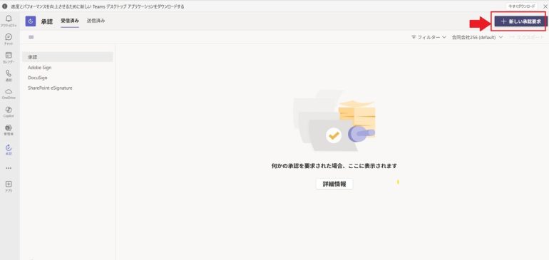 - 承認画面画面右上の「新しい承認要求」をクリックする