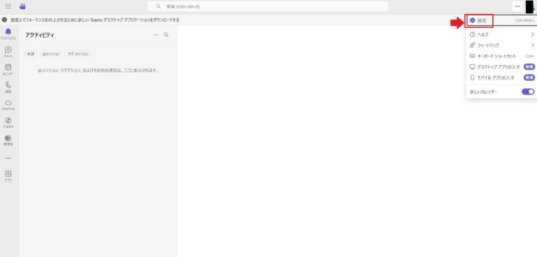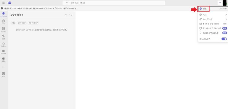 - Teamsの「設定」を開く