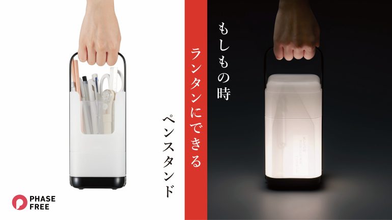 「もしもの時ランタンにできるペンスタンド」は、普段使用しているものを非常時にも役立てる「フェーズフリー」の発想に基づき企画された製品。大容量収納と、スマホスタンド機能を備え、ペンスタンドとしての利便性を高めるだけでなく、非常時にはランタンとして役立つ高い有用性が評価され、一般社団法人フェーズフリー協会の「フェーズフリー認証」も取得している。