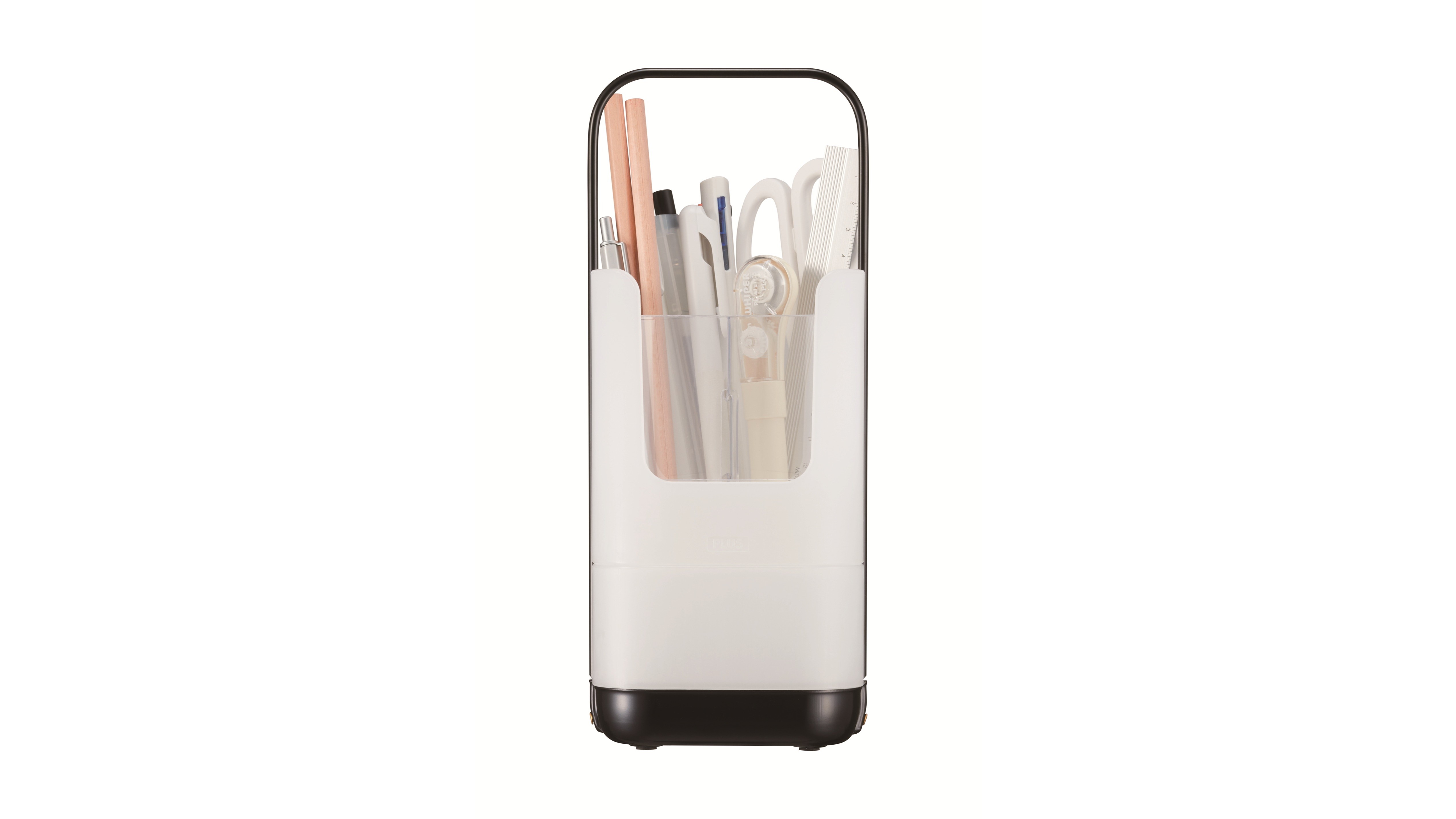 また、持ち手付きで簡単に持ち運べるため、フリーアドレスなどの移動時にも便利。さらに、上部ケース内のくぼみは、スマホスタンドとしても使用可能だ。