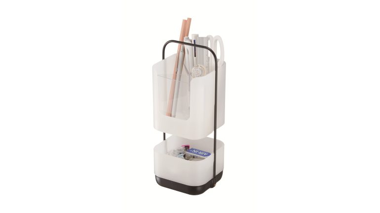 日常時には、ペンスタンドとして、筆記具、定規、はさみなどなどの長い道具入れとして使用できるほか、小物トレーも備えているので、消しゴム、マスキングテープ、ハンコなども収納可能。