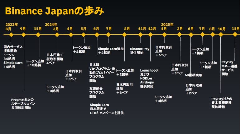 最大の強みは、グローバルのBinanceと共有して、グローバル価格での取引環境を日本国内でも得られ、円決済できること。2025年10月にはPayPayと資本業務提携契約を結び、翌11月からPayPayマネーやPayPayポイントで暗号資産を購入したり、売却代金をPayPay残高にチャージできるなど、PayPayとの連携サービスも開始している。