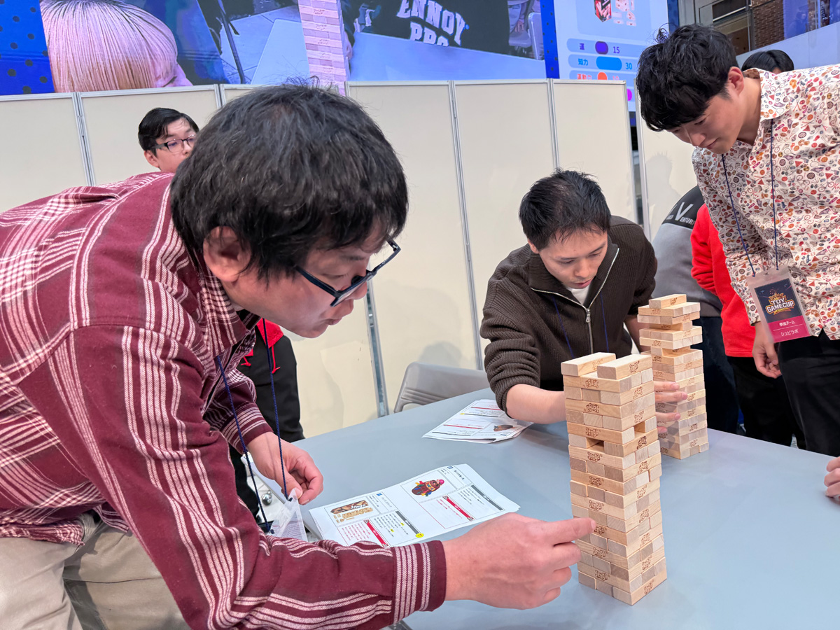 最初に対戦したのは友人同士という男性3人組。『オートリオ』『ジェンガクラシック』『ストライク』3つのトイゲームで対戦するも3戦全敗。こういったゲームに慣れていると思われる方から1つも勝ち星を上げることができませんでした。