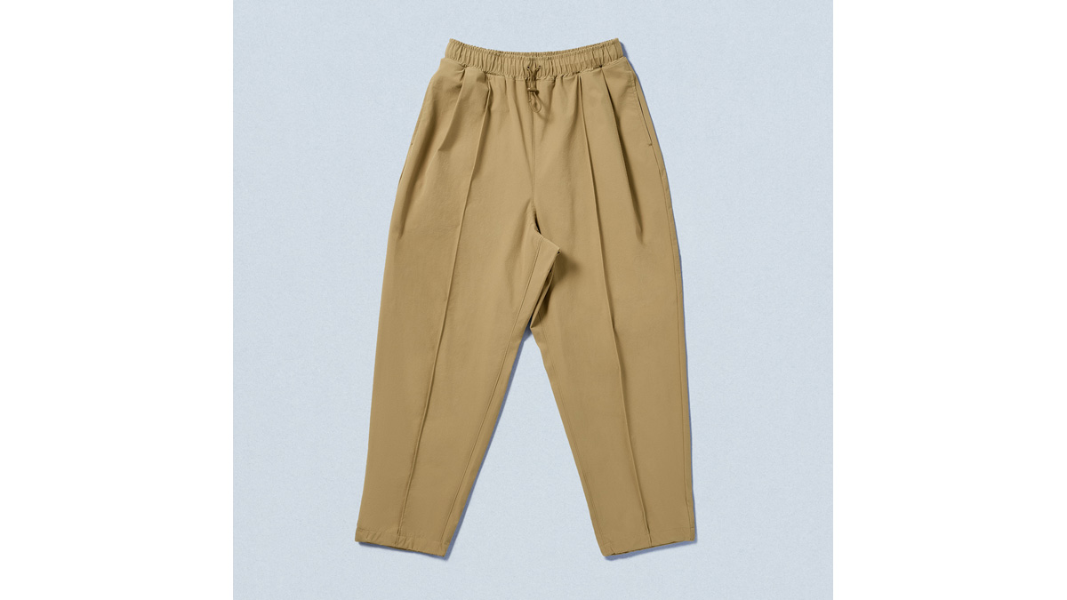 内容:ジョガーパンツは現在展開している黒に加えて新色のベージュが登場。撥水、UVカット、ストレッチが効いた高機能素材を使用しており、履き心地が抜群。