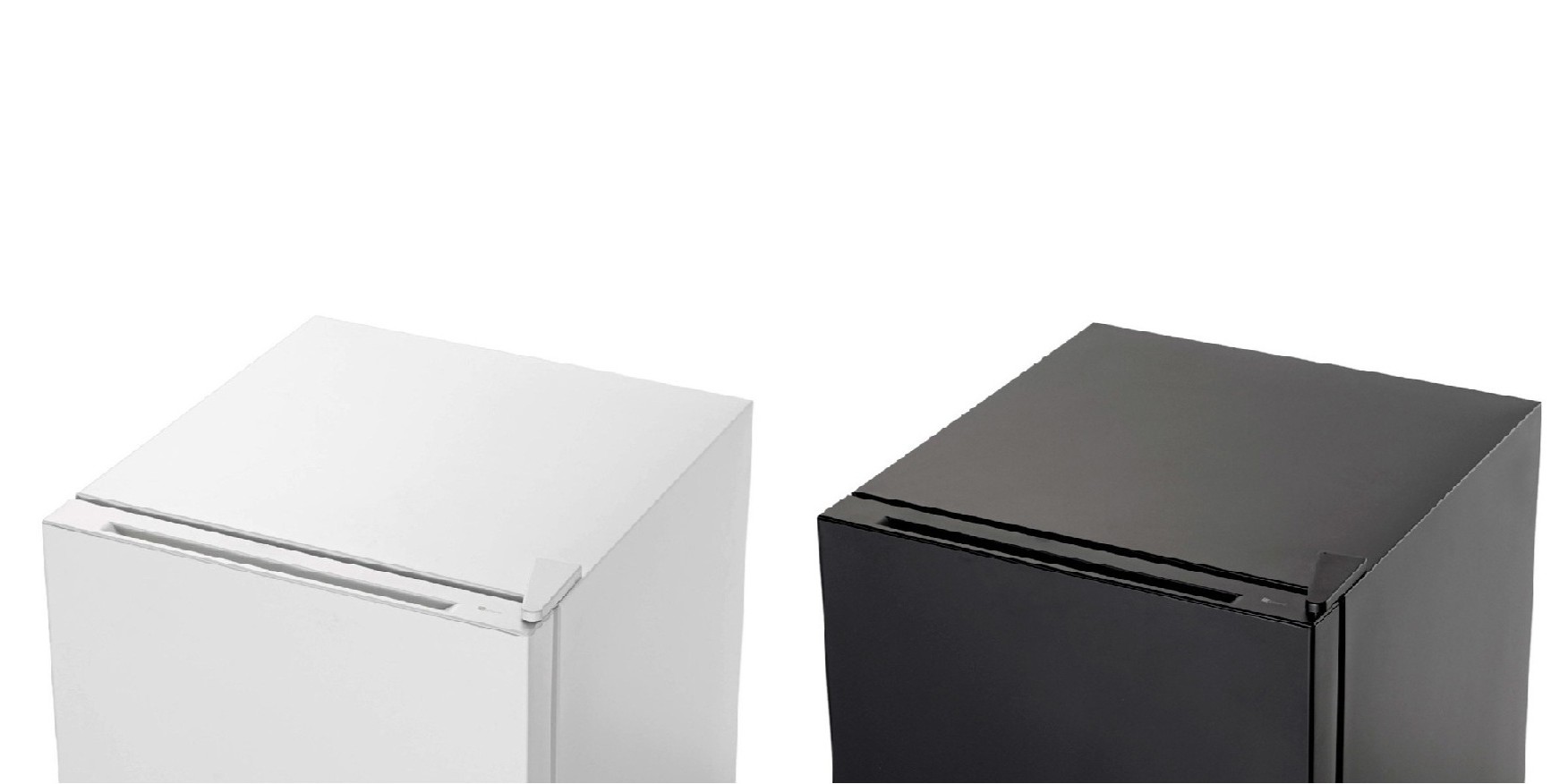 本製品は、フラット&マットなデザインのコンパクト冷凍庫。表面はマット仕上げで形状はスクエアを採用、さらに取っ手などが目立たないフラット設計なので、圧迫感なく設置することができる。