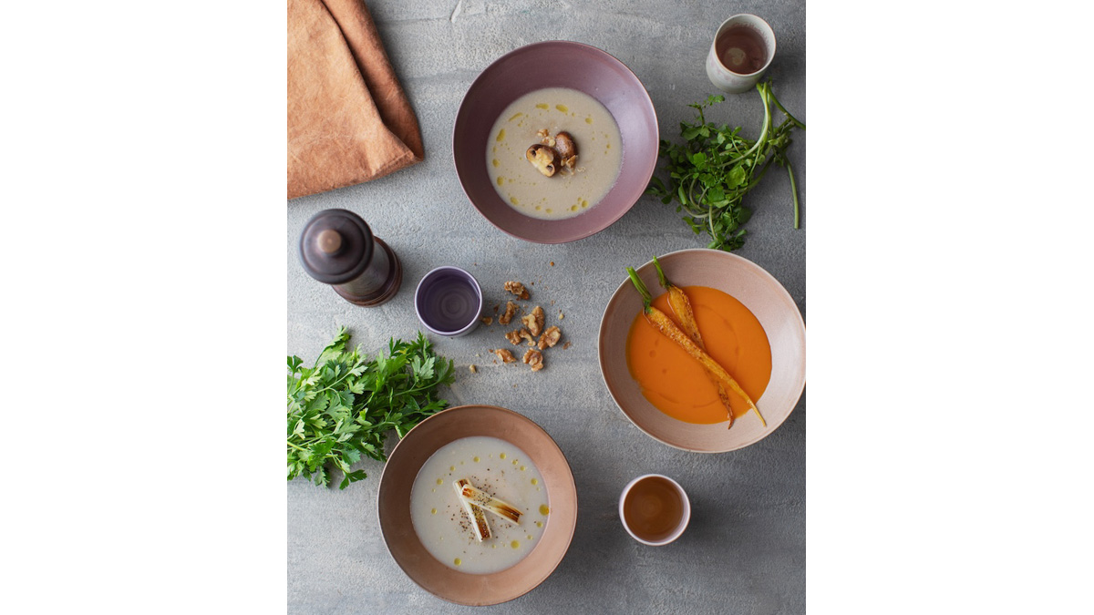 「低温調理で時間をかけてつくるもの以外は、どんなに調理に時間がかかっても30分で完成させようと考えていました」と三幣さん。限られた調理時間の中で加熱と粉砕が終わるよう、刃の回転数や加熱時の温度の上げ方をレシピごとに決めていったが、じゃがいものようなでんぷん質の多い食材を使うメニュー、焦げやすい食材を使うメニュー、粘度が高いメニューはプログラムを組むのが難しかったという。プログラムを組み実際につくってみたところ、途中で焦げつかせてしまったこともあった。