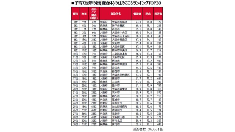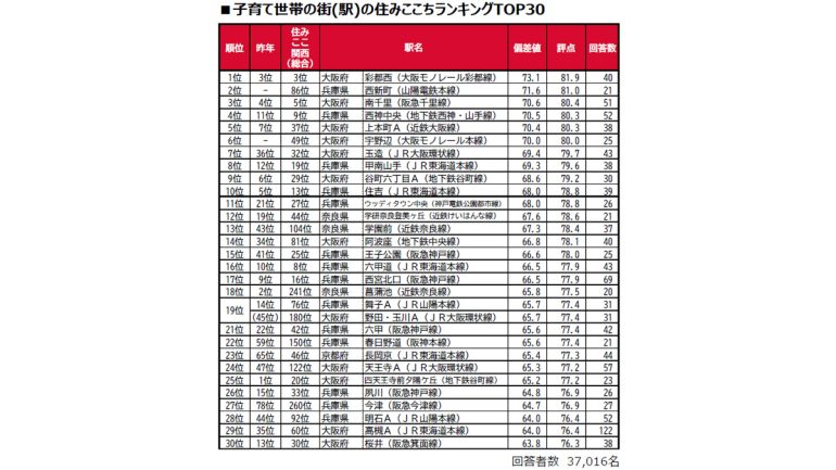 大東建託は、関西(大阪府・京都府・奈良県・兵庫県・滋賀県・和歌山県)居住の20歳以上50歳以下、既婚、子どもがいる世帯、合計37,083名を対象に過去最大級の居住満足度調査を行い、「子育て世帯の街の住みここちランキング2025<関西版>」として集計したので、結果を紹介しよう。