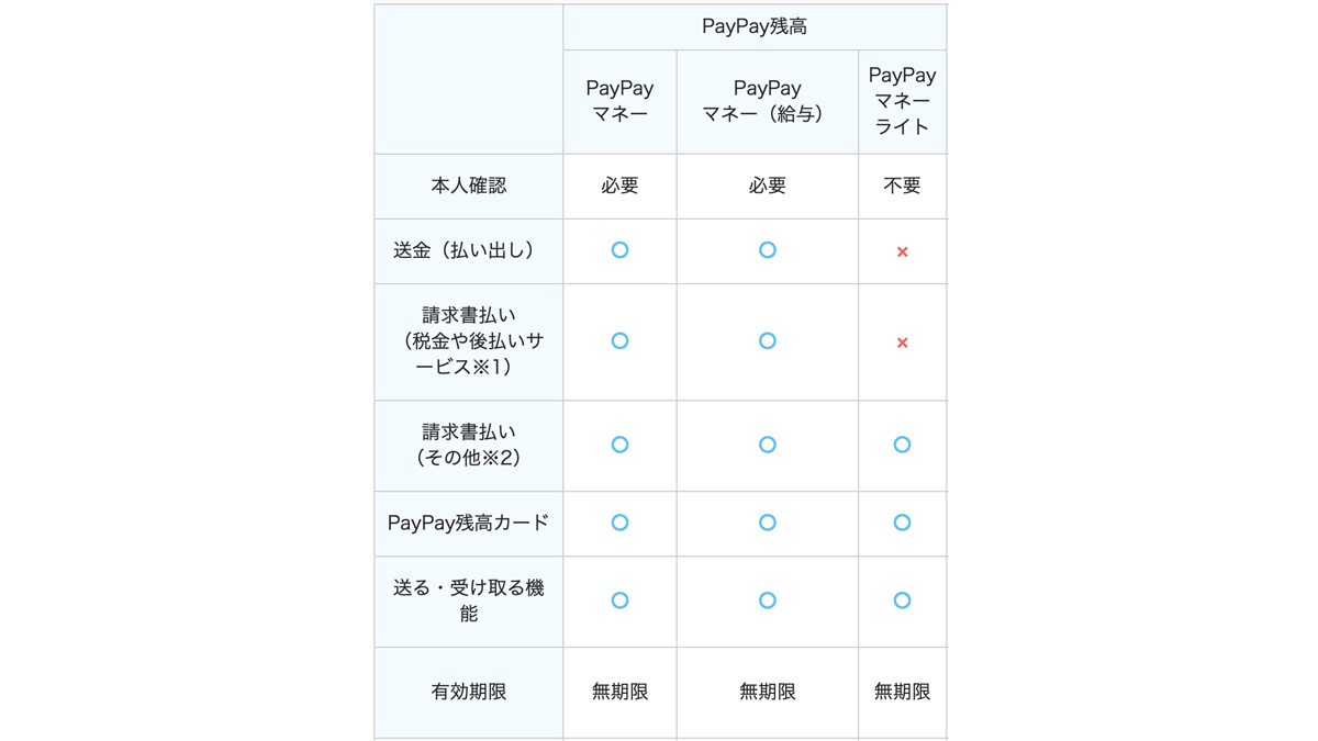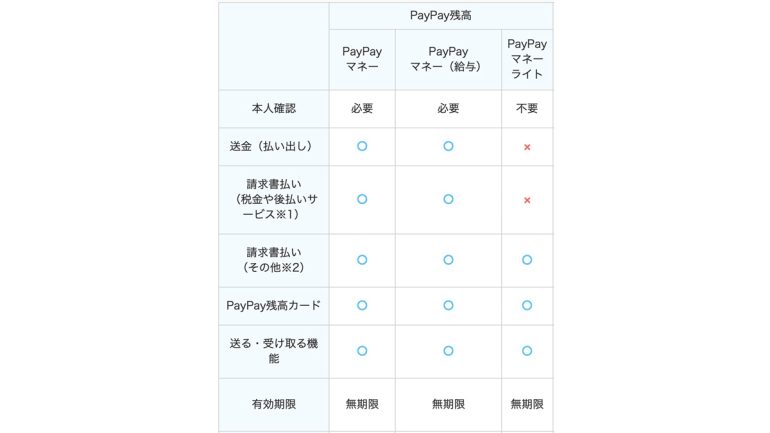 PayPayマネーとPayPayマネーライトは似ていますが、PayPayマネーライトは利用の仕方に制限がかかります。どちらも個人間で送金することはできますが、PayPayマネーライトは銀行口座への払い出しができなかったり、一部の請求書払いが利用できなかったりします。