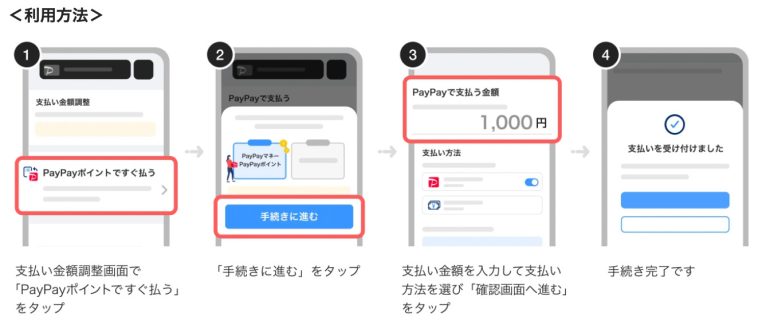 PayPayアプリの「カード」に入り、「支払い金額調整」>「PayPayポイントですぐ払う」で手続きができます。