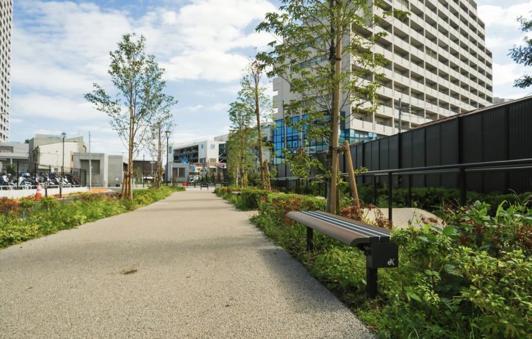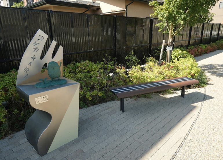このベンチがあるのは、京王線の地下化により2年前に誕生した線路跡地の遊歩道。水木しげるゾーン、文化発信ゾーン、やすらぎ健康ゾーンのスペースが存在し、昨年には「ちょうふぽっぽみち」という愛称も決定した地元の方に愛されているスポットだ。
