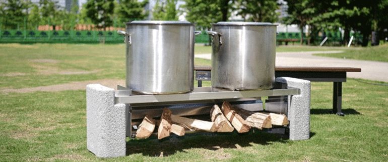 平常時は憩いのベンチとして利用でき、災害時はかまどとして炊き出しが可能。