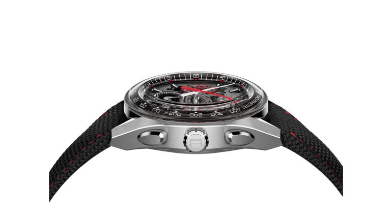 今回発表された「タグ・ホイヤー カレラ スプリットセコンド クロノグラフ」では、まったく新しい42 mmのグレード5チタン製ケースを採用し、タグ・ホイヤーのインハウス デザインチームによって設計された。