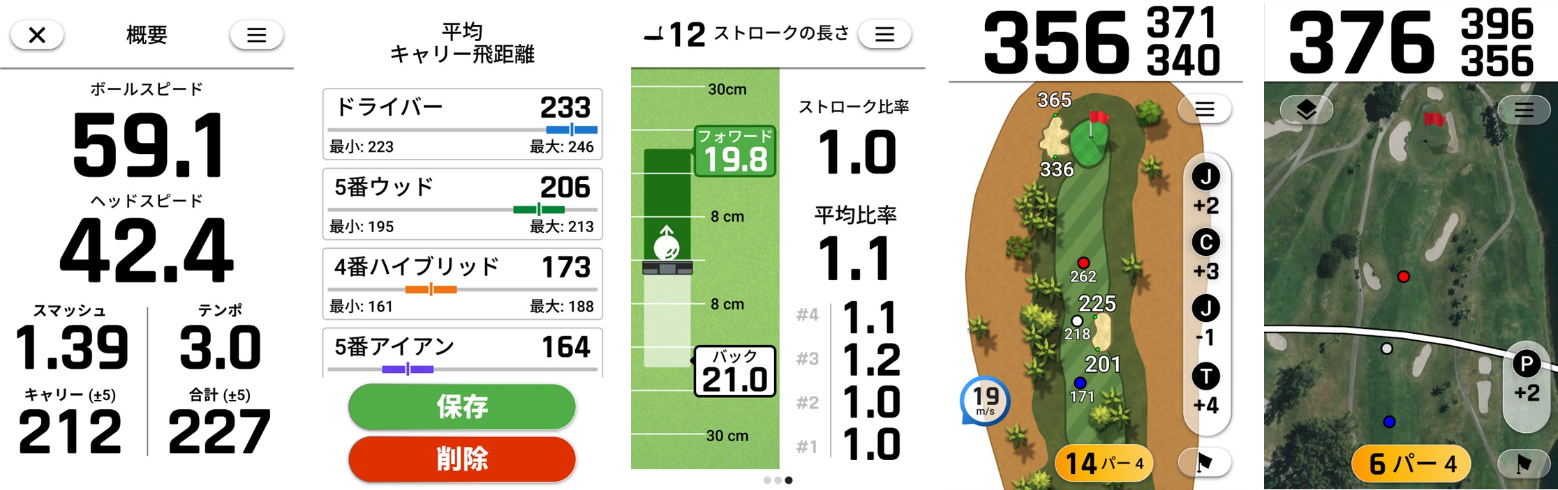 なお、「パッティングトレーニング」モードでは、ストロークの長さ・ヘッドスピード・ボールスピード・スイングテンポなどのデータを表示。ゴルフ練習場で活用できる「ドライビングレンジ」モードでは、ヘッドスピード・ボールスピード・スマッシュファクター・スイングテンポ・推定飛距離なども計測する。