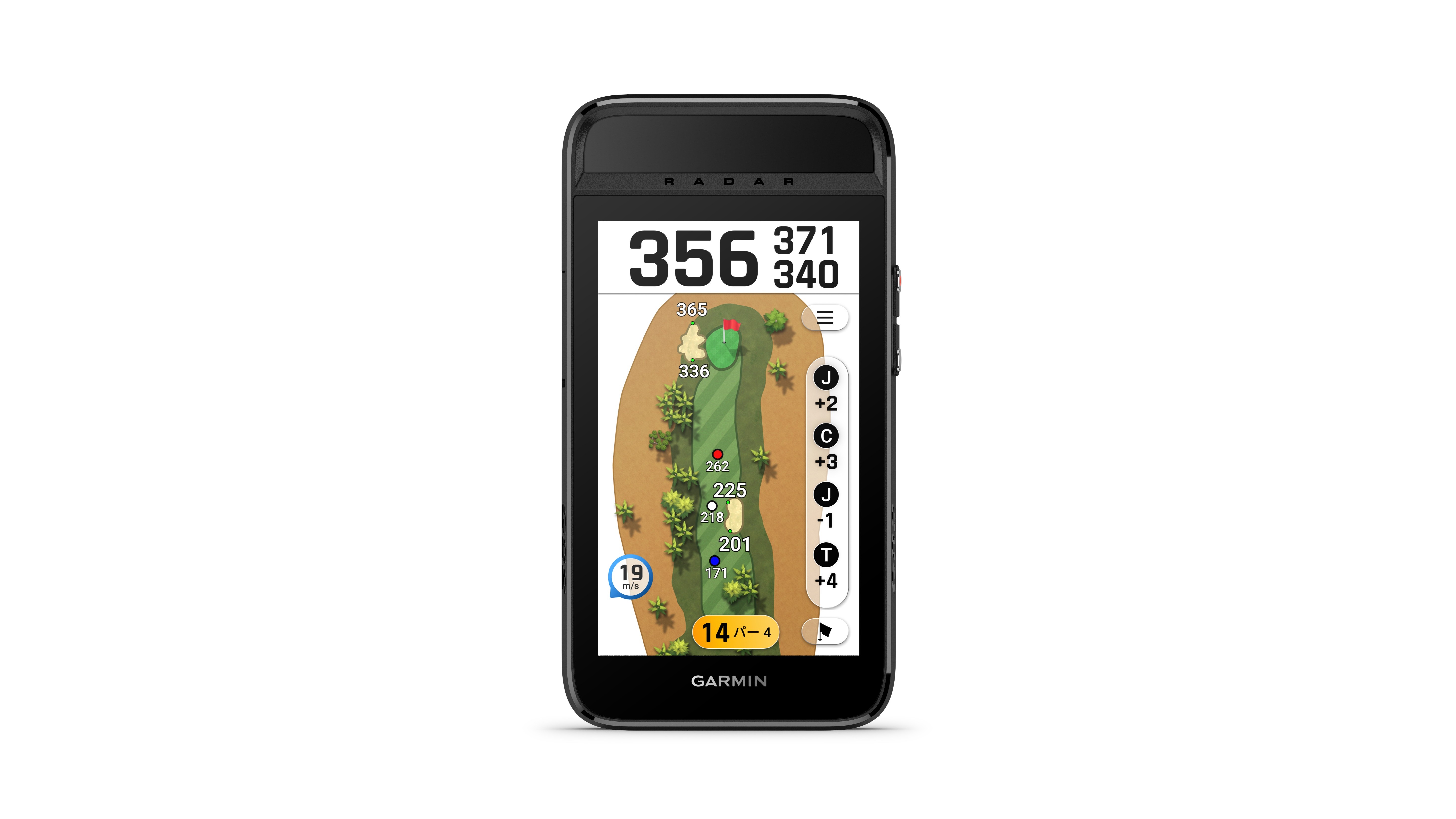 また、5インチの大画面フルカラータッチディスプレイを備えているのも特徴で、全世界43,000以上のゴルフコースやスイング計測データを見やすく表示する。
