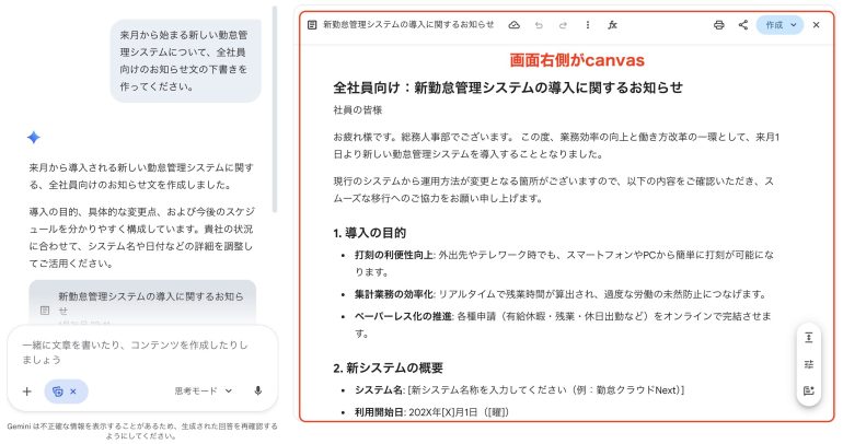 Gemini Canvasとは?チャット型AIから「共同作業型AI」へ