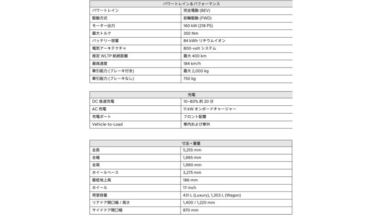 注:エネルギー消費量および性能数値は最終確定しておらず、最終的な認証の対象となる。車両の仕様および機能は国や地域によって異なる場合があり、予告なく変更されることがある。