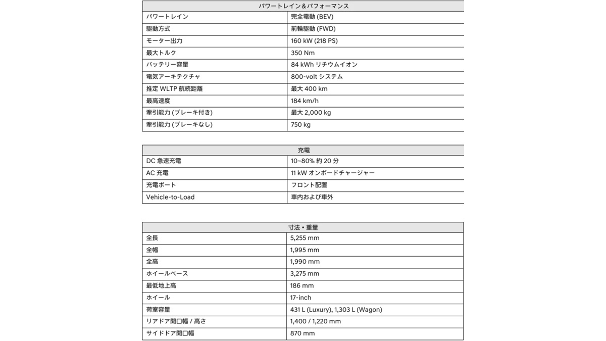 注:エネルギー消費量および性能数値は最終確定しておらず、最終的な認証の対象となる。車両の仕様および機能は国や地域によって異なる場合があり、予告なく変更されることがある。