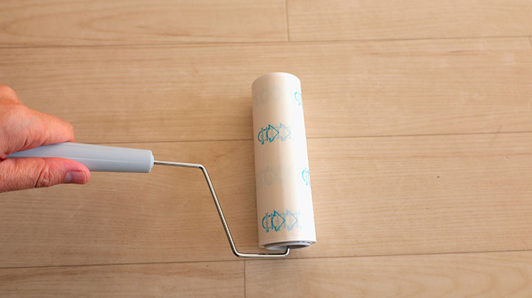 「フローリング用」は、ダイソーではこれ以外に見かけず珍しい。こちらは、フローリング床でも貼り付きにくい粘着剤を使っており、畳やビニール床でもOK。実際に筆者宅のフローリング床で試してみたが、貼り付きはなかった。ただし、ワックスやコーティングがはがれる恐れがあるため、隅の目立たない箇所で試しておく必要はある。
