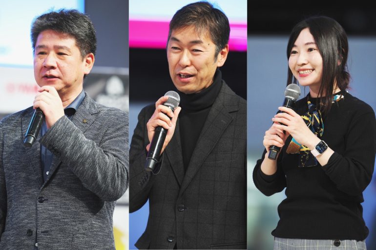 ステージには、司会進行のテレビ東京アナウンサー・齋藤陽さん、競技実況のフリーアナウンサー・田口尚平さんが登場。また、ヤマハ発動機株式会社の小林一裕ロボティクス事業部長、株式会社Cygamesの永谷真澄CTO室テクニカルディレクター、マイクロソフトの千代田まどかさんが審査員として参加しました。