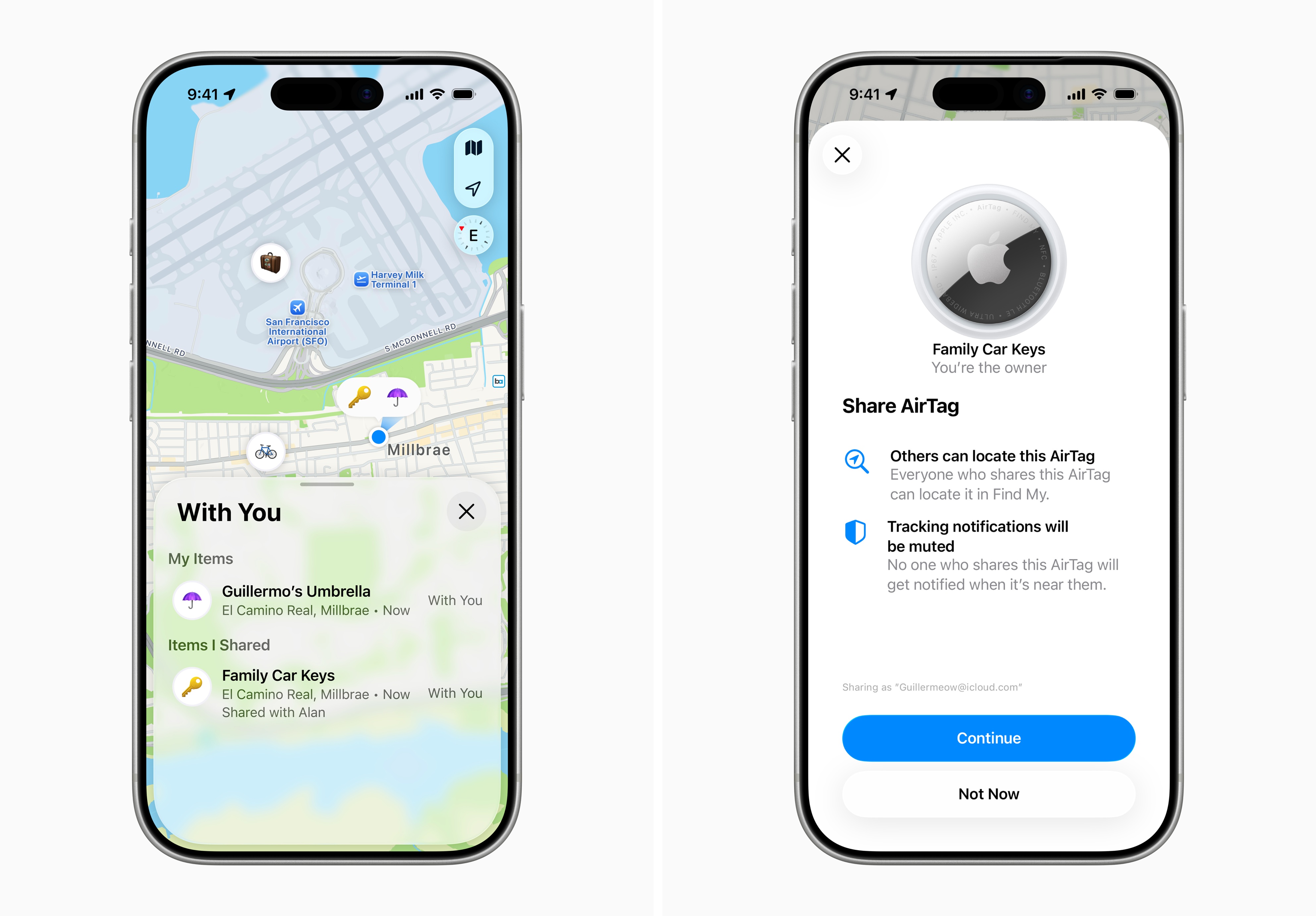 このほか、「持ち物の位置情報を共有」にも対応。探している持ち物の位置情報を航空会社などの信頼できる他社と一時的かつ安全に共有し、一緒に探すことができる。なお、共有の期間は7日で、持ち物が手元に戻ると自動で停止される。