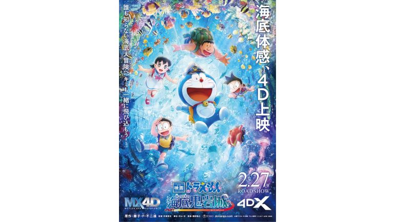併せて解禁となった4D予告では、ひみつ道具「水中バギー」で海底を縦横無尽に駆け巡るドラえもんたちの姿が映し出される。冒険の先で待ち受けるのは、見たこともない巨大イカや謎に包まれた沈没船……。未だかつてない大冒険への期待が高まる映像となっている。