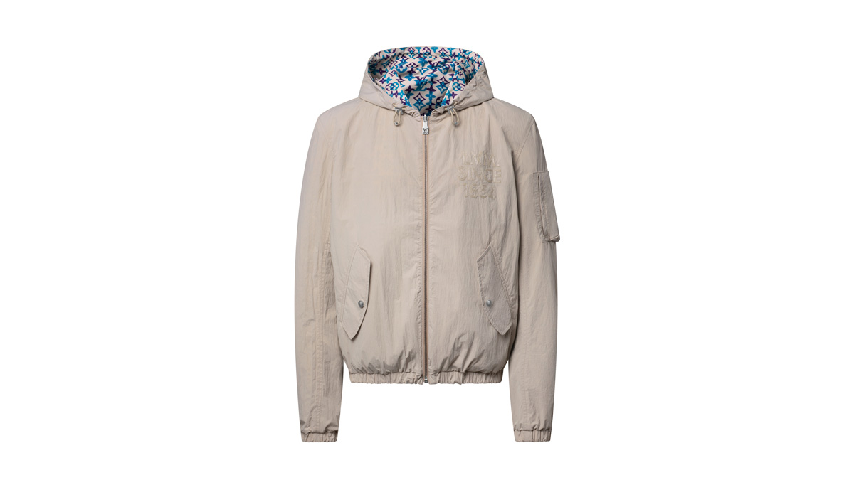 裏面には、2026春夏ファッションショーを象徴する、インドの職人技の伝統から着想を得たグラフィカルなモノグラム·オーバーラップ モチーフを、鮮やかなターコイズとパープルの色合いで表現。多彩なスタイリングが楽しめる、万能なテクニカルアイテムだ。