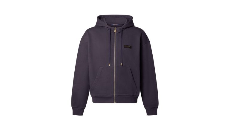 左胸元にはブラウンの「Louis Vuitton Paris」レザーパッチがアクセントを添え、フードドローコードのパール風コードエンドがダンディなひねりを加えている。週末のカジュアルな装いに活躍するエフォートレスな1着。