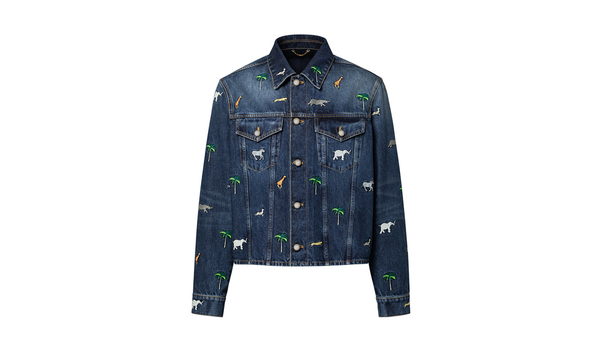 ルイ·ヴィトンが映画『The Darjeeling Limited(ダージリン急行)』のために制作したモチーフが美しい、2026春夏ファッションショーのグラフィカルなデニムシャツ。動物やヤシの木の鮮やかな刺繍がノスタルジックな旅へのオマージュを捧げる。