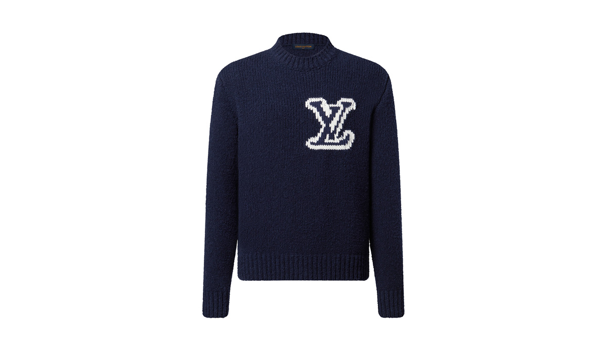 快適な着心地のクルーネックセーター。ウールの混紡素材のチャンキーな糸でこの上なく柔らかな手触りを実現し、コントラストを効かせたLV シグネチャーをニットの胸元に直接編み込んだ。