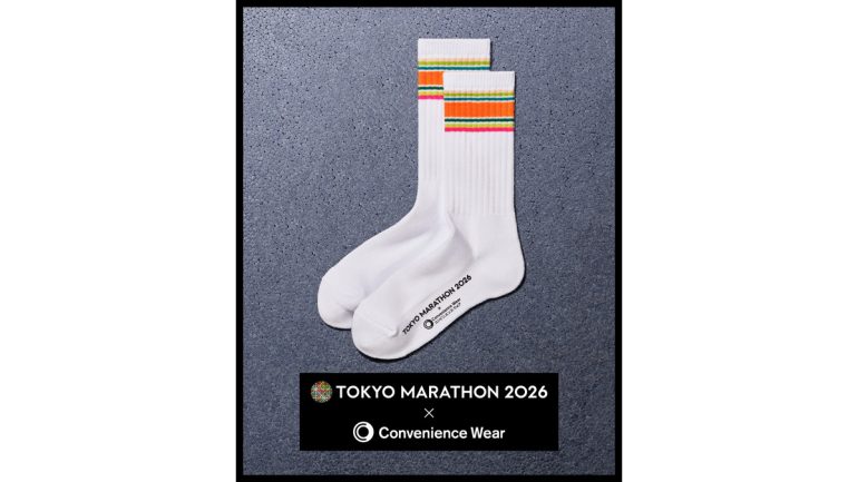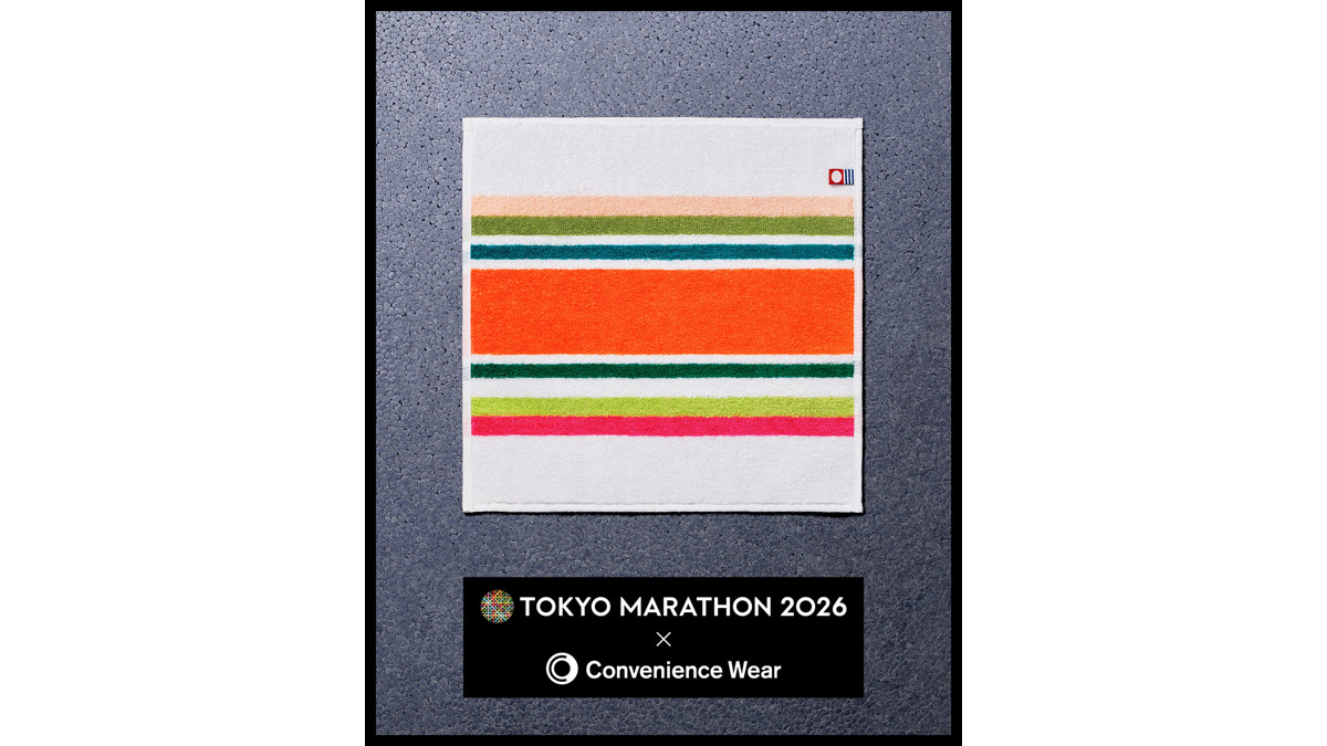 「コンビニエンスウェア」初となるコラボレーションアイテムは、今年の東京マラソンを象徴するカラーリングを取り入れ、東京の街や大会期間の高揚感を日常の中で楽しめるデザインに仕上げた。