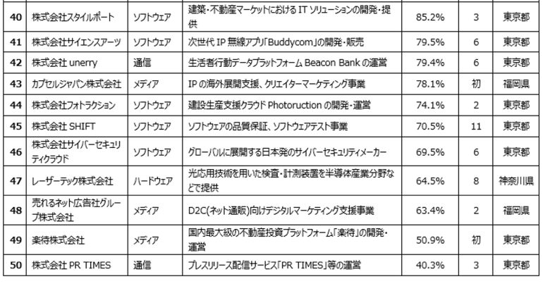 日本ではTMT業界の企業を過去3決算期の収益(売上高)に基づく成長率によりランキング、上位50社を発表している。