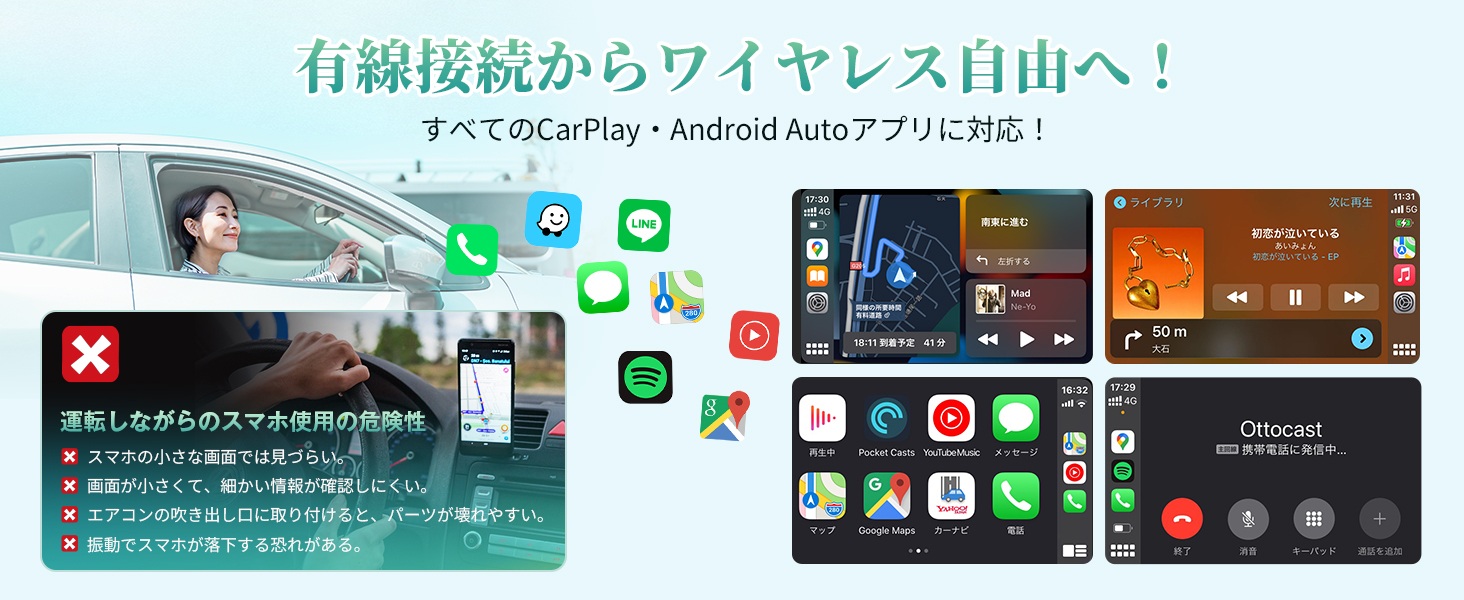 「OTTCAST Mini Core」は、車のUSBポートに接続するだけで、有線接続のCarPlayとAndroid Autoをワイヤレス化できる小型アダプター。USBポートに接続するだけで使用可能なプラグ&プレイ設計を採用し、複雑な設定や配線作業は不要。幅広い車種およびスマートフォンに対応し、車内環境をより快適でスマートなものへと進化させる。