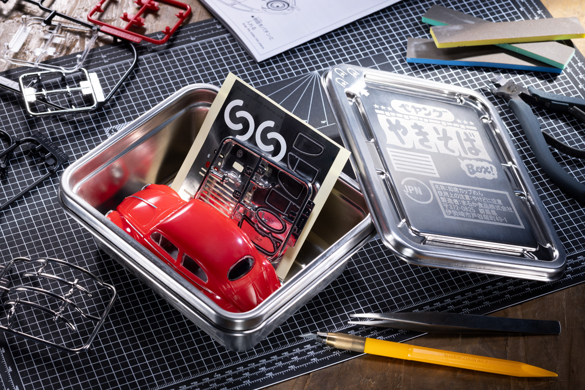 また、キャンプ飯の取り皿として活用したり、工具やパーツ、各種アクセサリー、さらには日頃から大切にしているアイテムなどを収納するために使ったりすることもできる。フタ部分や側面など本物同様のデザインでパッケージを再現することで、「ペヤング」ファンの感性を刺激する唯一無二のアイテムに仕上げられた。