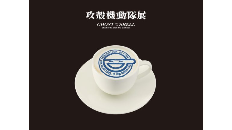 『攻殻機動隊 STAND ALONE COMPLEX』に登場する架空のハッカー「笑い男」マークのラテ。850円(税込)。