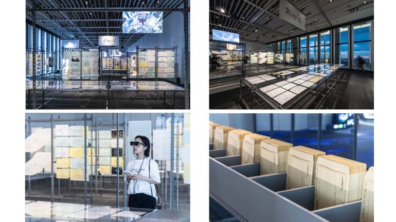 「PATH A “STORY”(世界への導入)」を抜けた先に広がるのは、本展のメインでもある「“DIG”(掘り起こす)」の会場へ。約1000平方mの大空間には、全ての攻殻機動隊アニメシリーズへアクセスできる1600点を超える制作資料が一堂に集結。アニメの設定資料や原画、背景美術、セル画など、作品をかたちづくる膨大な資料群の中から、来場者自身の“好きなシーン”や“記憶に残る瞬間”を掘り起こす体験を楽しむことができる。