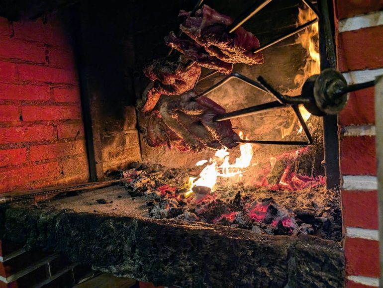 ちなみにチリの食事は「素材のおいしさを大切にする」ものが多い。たとえば代表料理である南米風のバーベキュー「アサード」は炭火焼きだが強火で炙るのではなく、大きなブロック肉(場合によっては子牛、子羊、子豚などを丸ごと)を熾火で1~2時間かけてじっくりとうまみを引き出す。