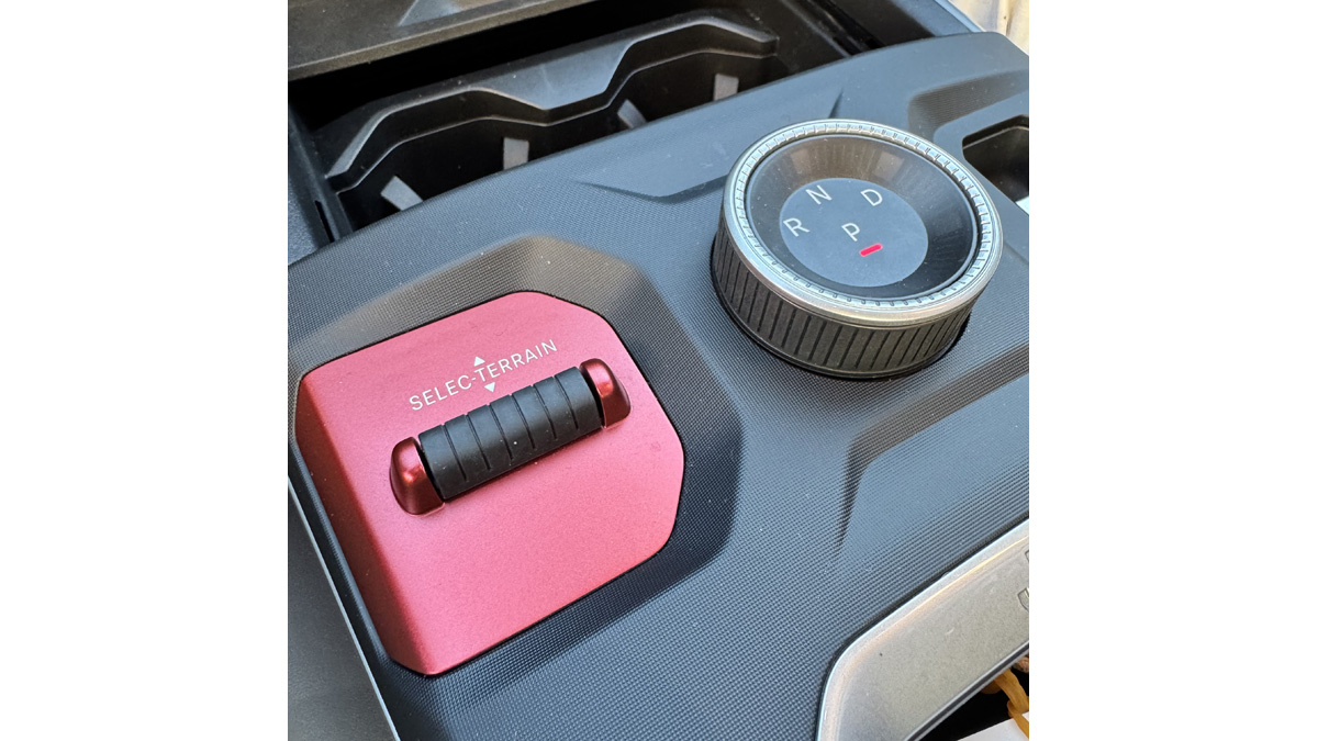 そんな空間の収納スペースも大幅に増えているそうだ。また新型「Compass」ではシフト“レバー”をやめ、ロータリシフトに変更。その隣には、セレクテレイン・ボタン(唯一の赤色パーツ!)を新たに採用することでフロントシート周辺の凹凸がスッキリと整えられている。セレクテレインシステムはドライブモード切り替えのジープの名称で、街中から雪道、未舗装路まで様々な路面状況に柔軟に対応、クルマが環境に合わせて最適な制御を行うことでドライバーは安心して運転に集中できる。操作系は直感的で物理スイッチを効果的に残した設計がJeepらしい“使う楽しさ”を感じさせてくれる。