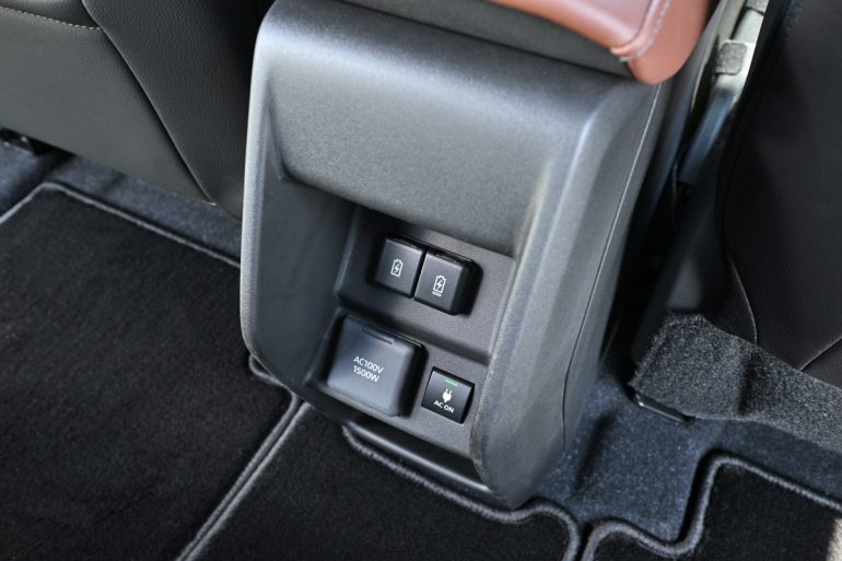 そして、eビターラのインド仕様にある後席エアコン吹き出し口が日本仕様にはないこと。実は、それがインド仕様ではあるところに、電動車ならではの、スズキとして初搭載のAC100V/1500Wコンセントが代わって用意されているのだ(全グレード。それはそれでアウトドアや災害時に役立ち、嬉しいのだが)。個人的にはAC100V/1500Wコンセントはラゲッジルームでもいいわけで、センターコンソール後端には、ここ最近、夏の酷暑が続く日本の気候を踏まえ、後席エアコン吹き出し口を装備してほしかったというのが、本音である(後席に愛犬を乗せるユーザーならなおさら)。聞けば、どちらかを選んだ際、補助金面で有利な(外部給電の可否で補助金が増額される)AC100V/1500Wコンセントを優先したとか。後席エアコン吹き出し口にかかるコストはそうは大きくないはずなので、せっかくインド仕様にある後席エアコン吹き出し口の追加、AC100V/1500Wコンセントの移設(ラゲッジルームへ)を望みたいところだ。