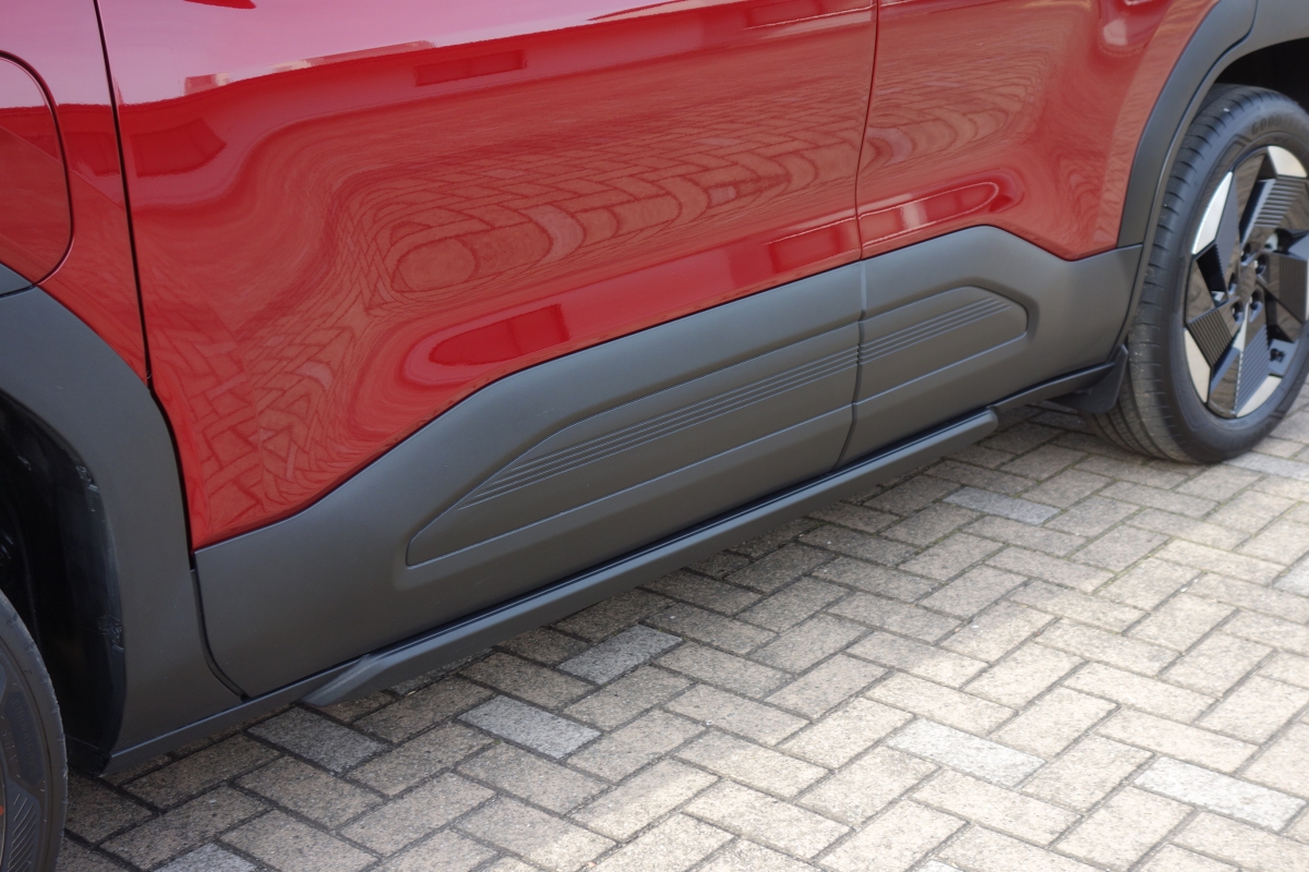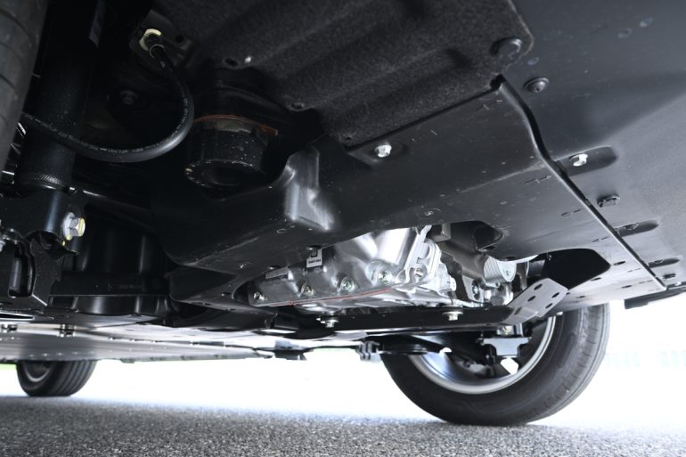 また、4WD車のALL GLIP-eは前後に独立した2つのAxleを配置する電動4WDであり、オートとトレイルモードを選択可。オートモードでは通常路面の加速時であれば前後輪に約50:50のトルク配分となり、一定走行時は約54:46、滑りやすい路面の走行時と減速時には約70:30のトルク配分が自動制御されることになる。トレイルモードでは、悪路などで空転したタイヤにブレーキをかけ、反対側のタイヤに駆動トルクを配分することで(LSD機能)スムーズな脱出を可能にしている。全車185mmの余裕ある最低地上高もあって、悪路、雪道にも強いBEV×SUVモデルと言えるだろう。