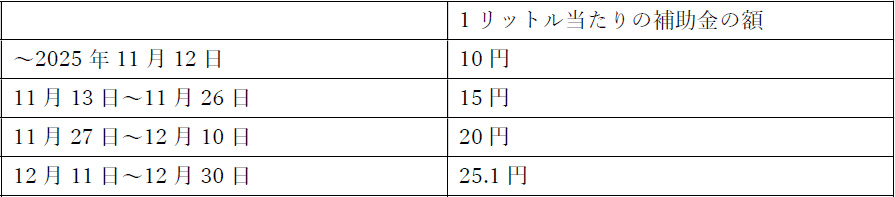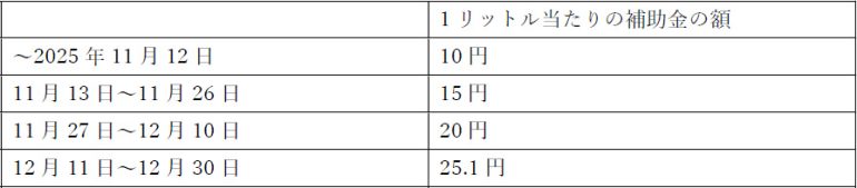 2025年12月11日以降は、暫定税率と本則税率の差額に等しい補助金が支給されるようになり、実質的な負担は本則税率と同等になります。