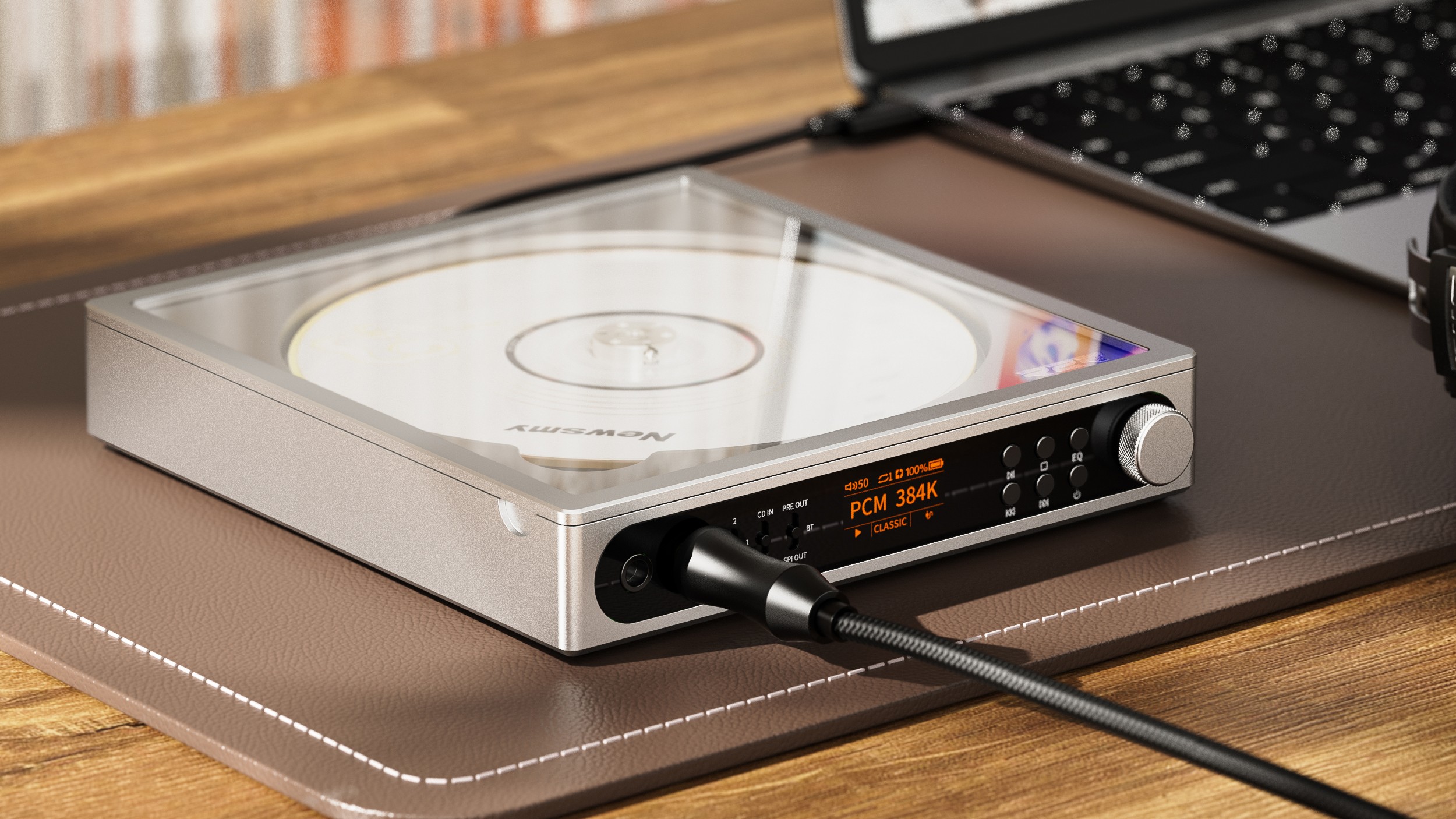 また、CD再生に留まらず、最大384kHz/32bit対応のUSB DAC、aptX Adaptive対応のBluetooth送信、デジタル出力を1台で実現。さらに、わずか25.5mmのスリムな筐体に、バッテリー損耗を防ぐDESKTOP MODEや1150mW(32Ω/バランス)の高出力を搭載する。