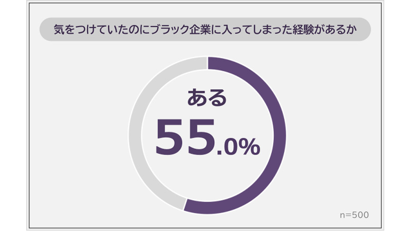 気をつけていたのにブラック企業に入ってしまったと答えた人は55.0%