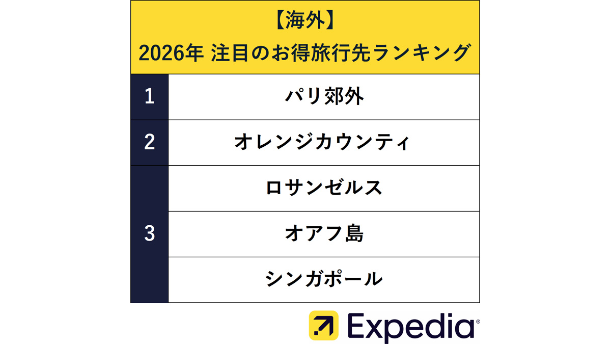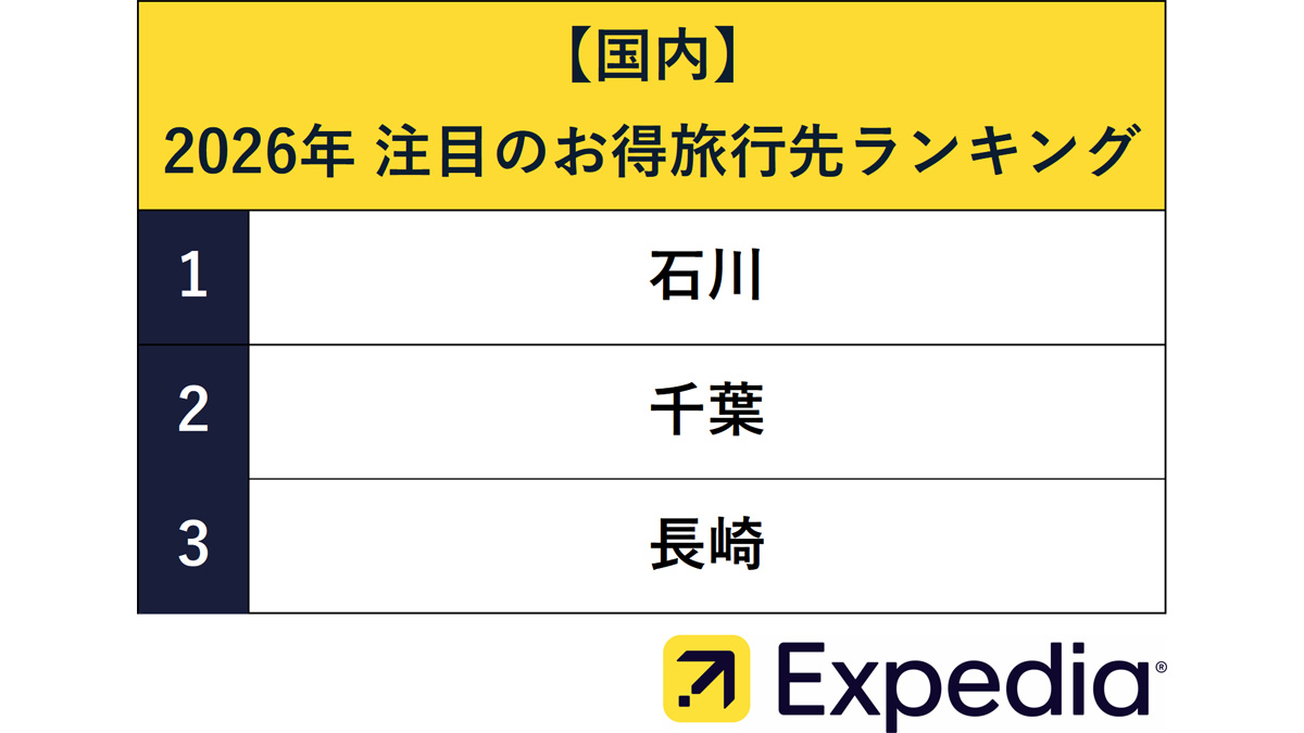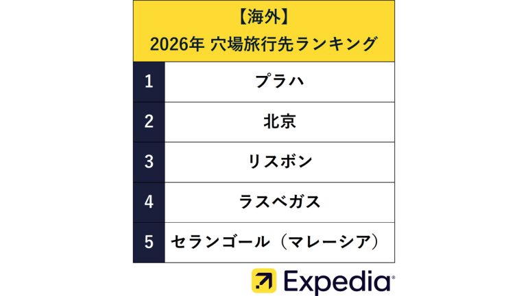 エクスペディアではこのほど、2026年における「注目のお得旅行先ランキング【海外・国内】」と「穴場旅行先ランキング【海外・国内】」を発表した。